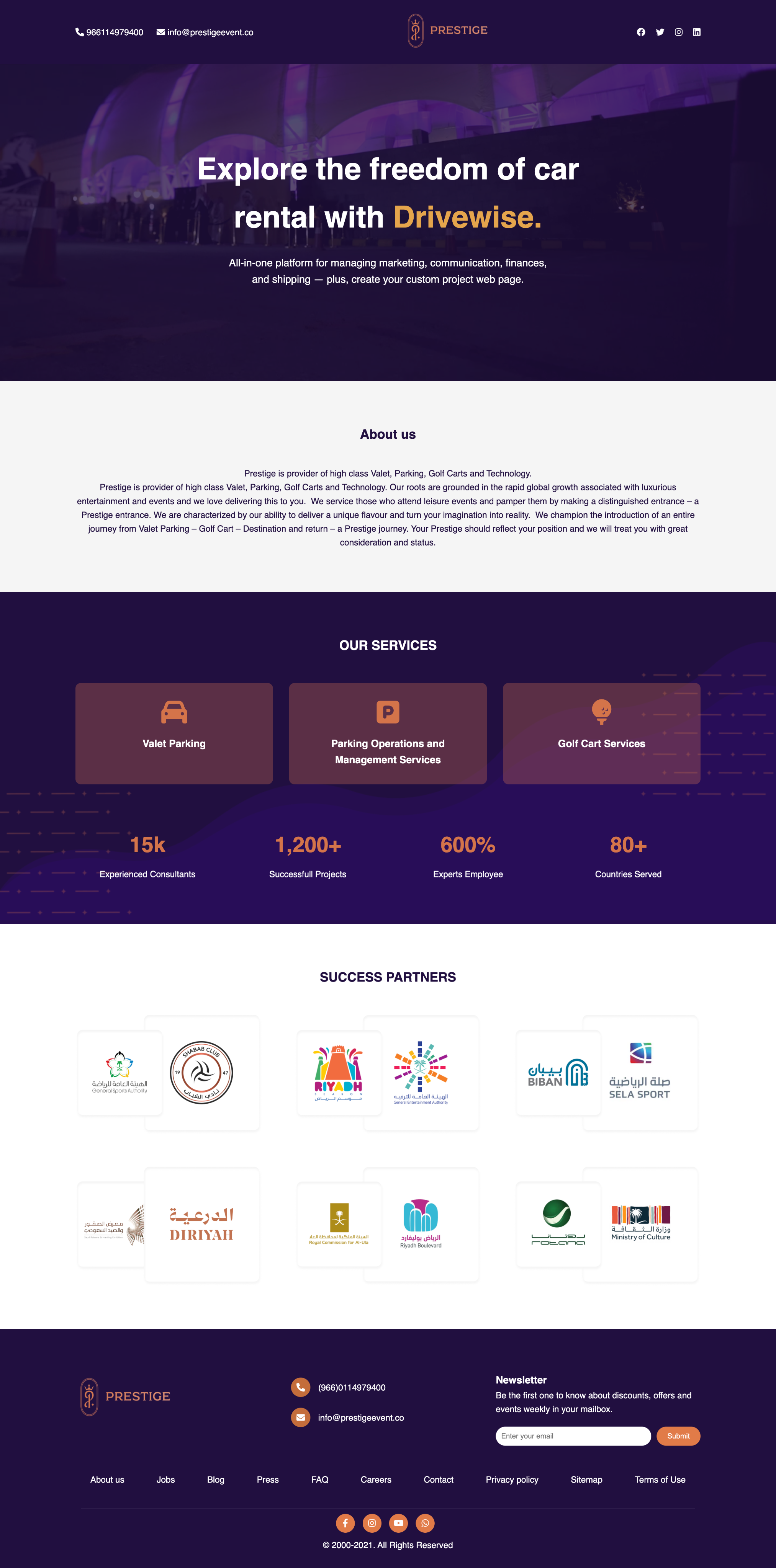 يقدّم Prestige تجربة فاخرة وسهلة لتأجير السيارات مدعومة بمنصة Drivewise، المنصة الشاملة التي تُمكّنك من إدارة كل جوانب عملك بسهولة وذكاء. من خلال أدوات متقدمة لإدارة التسويق، والتواصل، والعمليات المالية، والشحن، تمنحك Drivewise السيطرة الكاملة على كل التفاصيل — من الحجوزات عبر الإنترنت إلى تتبع السيارات وإصدار الفواتير تلقائيًا.