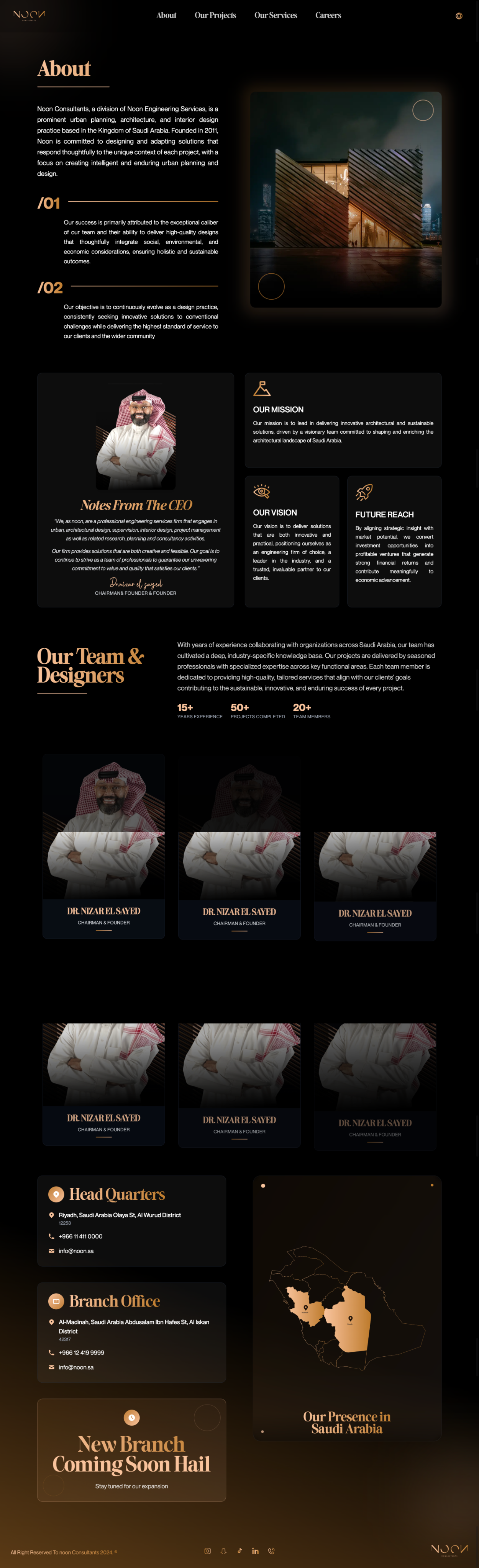شركة نون متخصصة في التصميمات الهندسية والمعمارية الحديثة. تم تطوير الموقع الإلكتروني لعرض مشاريعهم المبتكرة مع إبراز التزامهم بالمعايير البيئية والاجتماعية والاقتصادية. بواجهة عصرية واحترافية، يعكس الموقع خبرة نون ويؤكد مكانتها كشركة رائدة في مجال العمارة المستدامة بالمملكة.